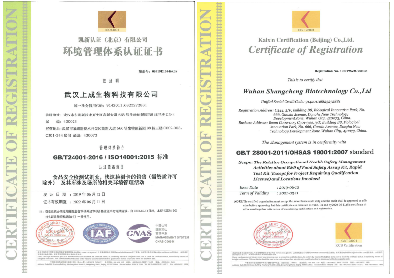 2019年6月12日,武漢上成生物科技有限公司通過了ISO14001:環(huán)境管理體系的認(rèn)證,并順利取得證書。