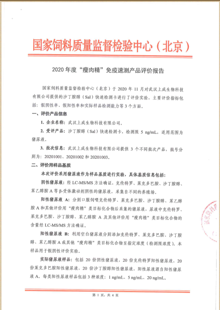 2020年瘦肉精三聯(lián)卡獲得國家飼料質(zhì)量監(jiān)督檢驗(yàn)中心(北京)評(píng)價(jià)報(bào)告