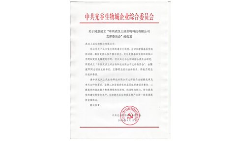 在公司團(tuán)隊(duì)的努力下,上成生物提交的成立支部委員會的申請,已由中共光谷生物城綜合委員會批復(fù)同意。