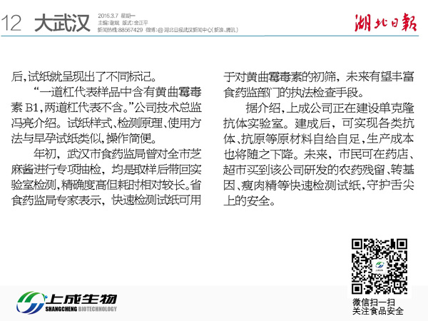 湖北日?qǐng)?bào):2分鐘可測(cè)芝麻醬中有無(wú)致癌物質(zhì)