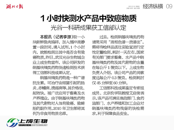 湖北日?qǐng)?bào):1小時(shí)快測(cè)水產(chǎn)品中致癌物質(zhì)