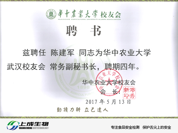 上成生物總經(jīng)理被華中農(nóng)業(yè)大學(xué)校友會(huì)聘請為常務(wù)副秘書長