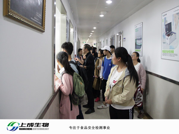 參觀學(xué)習(xí)組織嚴(yán)密,內(nèi)容豐富,分別參觀了高新技術(shù)成果展示廳、上成生物研發(fā)實(shí)驗(yàn)室、生產(chǎn)實(shí)驗(yàn)室和行政辦公區(qū)。上成生物的工作人員為同學(xué)們細(xì)致耐心的講解公司的發(fā)展歷程。公司成立于2008年,從最初的一間破舊的辦公室發(fā)展到現(xiàn)在擁有超過(guò)2000平米的研發(fā)基地和辦公區(qū)域。并且在2015年底成功在科技版掛牌。
