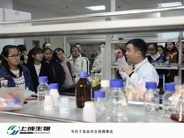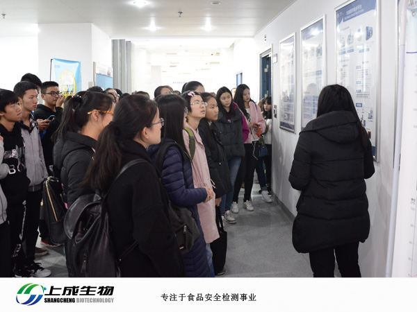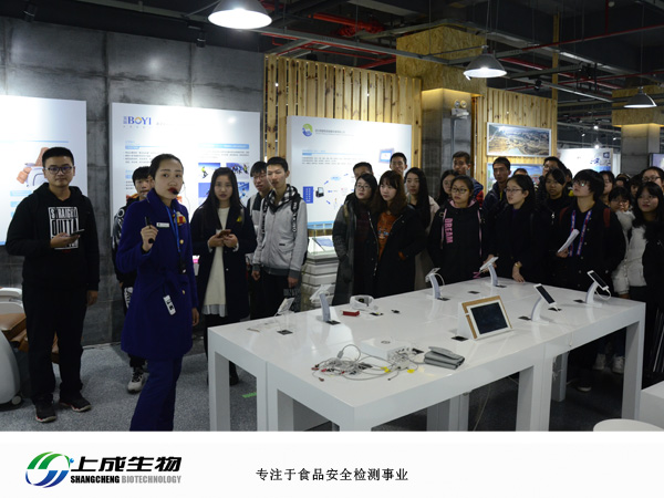 同學(xué)們首先來到光谷生物城內(nèi)的科技成果交易展示廳。學(xué)習(xí)了解生物城的整體發(fā)展規(guī)劃。第二站來到來到武漢生物技術(shù)研究院的公共服務(wù)平臺(tái),參觀學(xué)習(xí)最新的技術(shù)前沿。第三站同學(xué)們來到了上成生物的研發(fā)基地。由技術(shù)負(fù)責(zé)人為大家用簡(jiǎn)單易懂的語言講解食品安全的一些基礎(chǔ)知識(shí)。告訴同學(xué)們平時(shí)飲食的一些健康小常識(shí)。