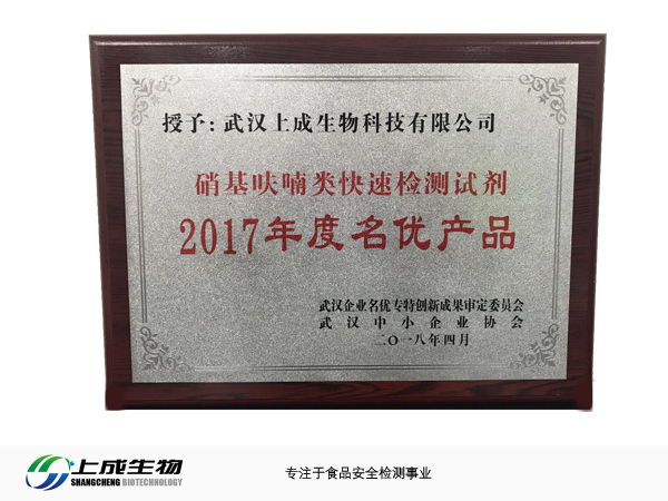 喜報︱【上成生物】 “硝基呋喃類快速檢測試劑”榮獲2017年度名優(yōu)產(chǎn)品