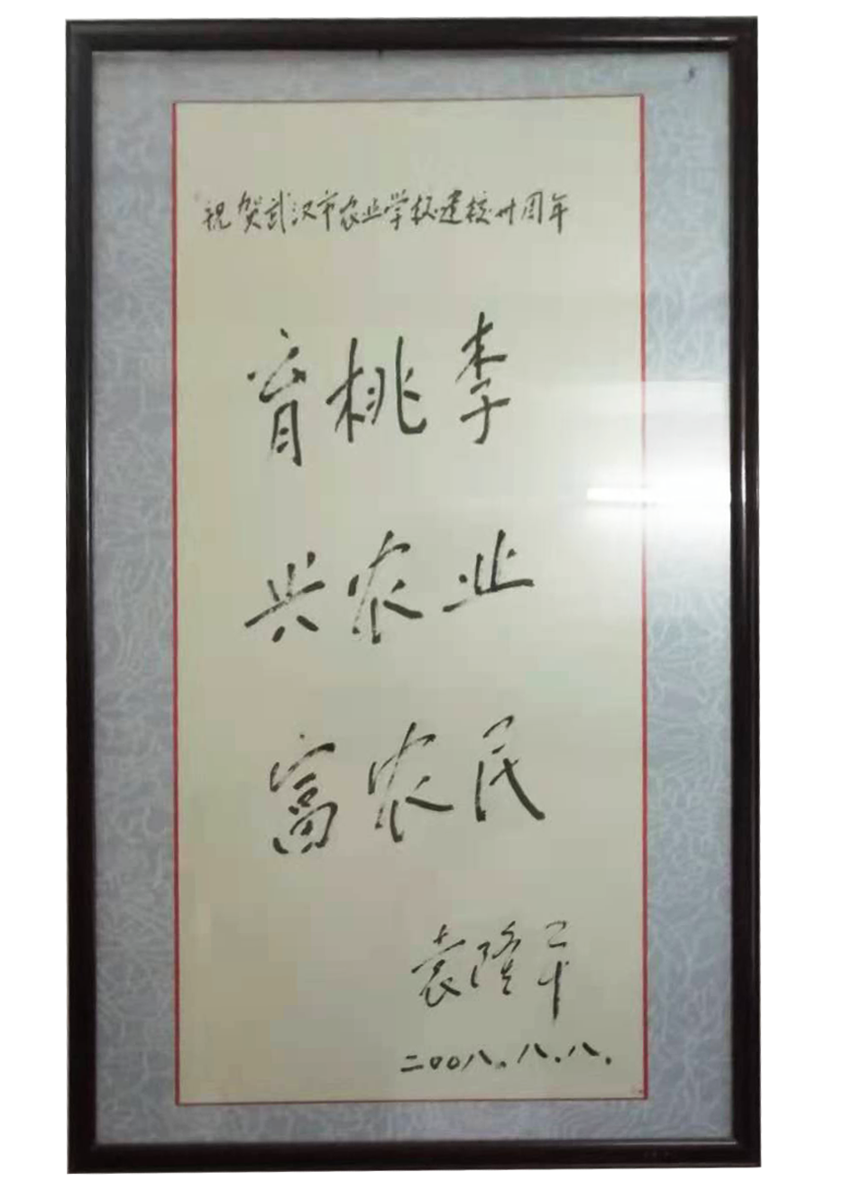 第二期培訓(xùn)班的地點(diǎn)仍然是在武漢市農(nóng)業(yè)學(xué)校,武漢市農(nóng)校建校有四十余年歷史。我們的培訓(xùn)學(xué)員在此有幸看到袁隆平院士2008年親筆題寫的“育桃李、興農(nóng)業(yè)、富農(nóng)民”幾個(gè)蒼穹有力的大字。袁老的一生為我國農(nóng)業(yè)作出了巨大的貢獻(xiàn),他的提字時(shí)時(shí)提醒我們謹(jǐn)記國家的富強(qiáng)振興,離不開農(nóng)業(yè)的發(fā)展。