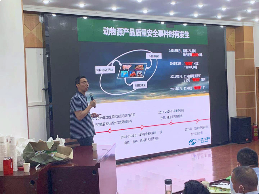 此次培訓(xùn)還邀請(qǐng)到華中農(nóng)業(yè)大學(xué)獸藥殘留基準(zhǔn)實(shí)驗(yàn)室博士生導(dǎo)師彭大鵬教授,彭教授激情洋溢的給大家講解了《獸藥殘留快速檢測(cè)技術(shù)研究進(jìn)展》,從我國農(nóng)產(chǎn)品的現(xiàn)狀,國家應(yīng)對(duì)的監(jiān)管政策,以及農(nóng)產(chǎn)品安全的快速檢測(cè)技術(shù)幾個(gè)方面進(jìn)行了全面的講解。使學(xué)員們學(xué)習(xí)到,檢測(cè)技術(shù)是保障農(nóng)產(chǎn)品安全的有效措施。