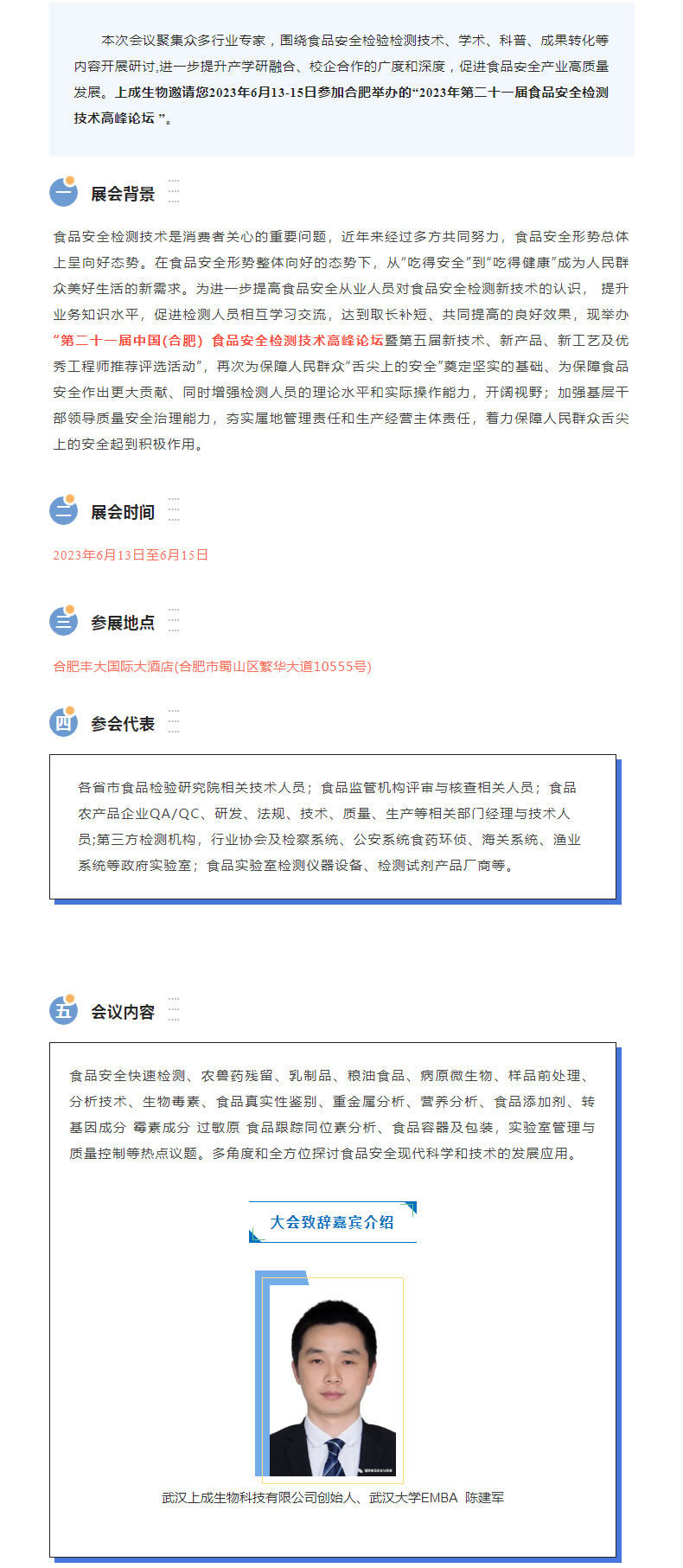 6月13日,上成生物與您相約合肥第二十一屆食品安全檢測技術(shù)高峰論壇