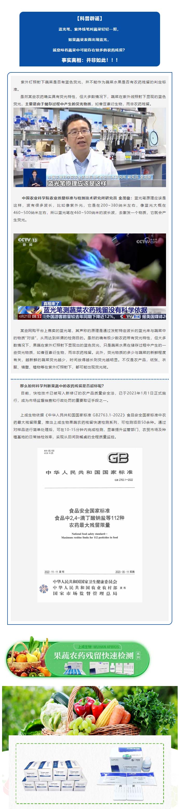 【科普辟謠】紫外燈能照出農(nóng)殘超標(biāo)嗎?