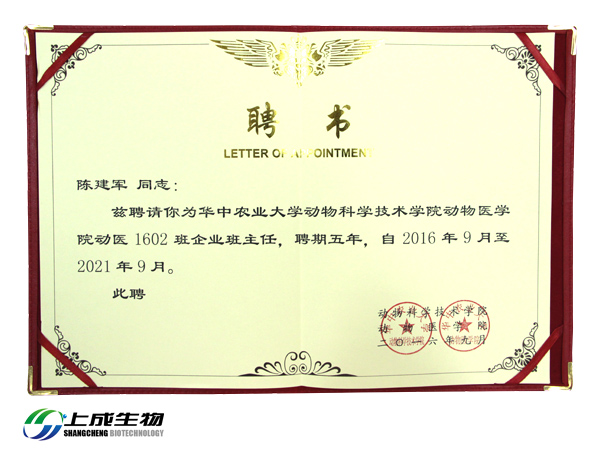 2016年9月6日,動(dòng)物科學(xué)動(dòng)物醫(yī)學(xué)院2016級(jí)新生開學(xué)典禮暨筑夢導(dǎo)師聘任儀式于在生豬健康養(yǎng)殖協(xié)同創(chuàng)新中心報(bào)告廳舉行。中國工程院院士陳煥春,副校長吳平,學(xué)院黨政負(fù)責(zé)人,新生教師班主任與企業(yè)班主任,以及全體本科生參加典禮。副校長吳平等黨政領(lǐng)導(dǎo)為企業(yè)班授牌,并為企業(yè)班主任與教師班主任頒發(fā)聘書,上成生物總經(jīng)理陳建軍被聘任為企業(yè)班主任。此后,陳建軍總經(jīng)理深入班級(jí),召開以“創(chuàng)業(yè)啟蒙”為主旨的班會(huì)。陳總介紹了自己的創(chuàng)業(yè)經(jīng)歷,并回答了新生有關(guān)就業(yè)及創(chuàng)業(yè)方面的提問,同學(xué)們表示深受啟迪和鼓舞。此次活動(dòng)是上成生物公司與動(dòng)物科學(xué)動(dòng)物醫(yī)學(xué)院開展校企合作的繼續(xù),對弘揚(yáng)優(yōu)秀企業(yè)文化、促進(jìn)該校班集體建設(shè)和學(xué)生健康成長,將起到良好的示范作用。(胡婕撰稿)