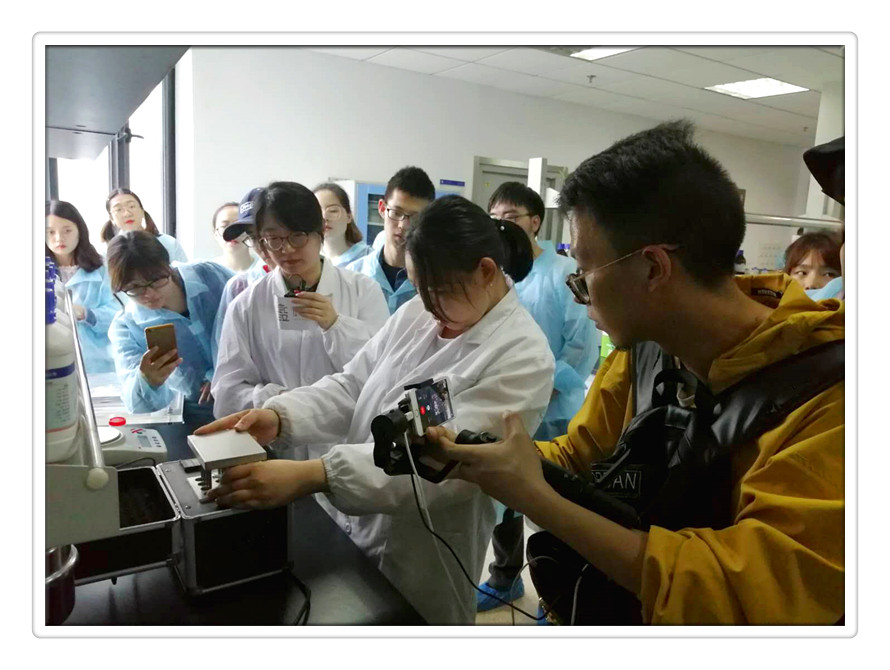 4月24日下午,15名華科大學子和15名華農(nóng)學子一起參觀了上成生物的食品安全檢測過程。通過技術(shù)直播的形式,將理論課程和時間課程形成互動,實現(xiàn)了課程形式的突破和創(chuàng)新。